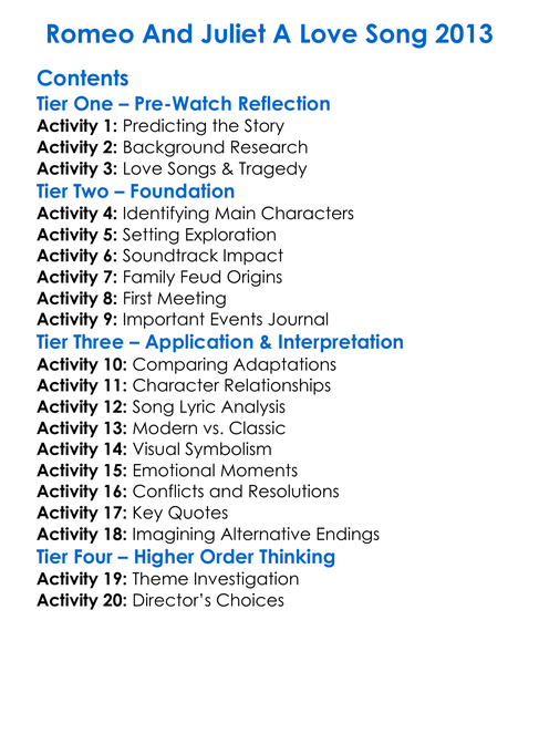 Romeo And Juliet A Love Song 2013 Worksheet Activity Booklet