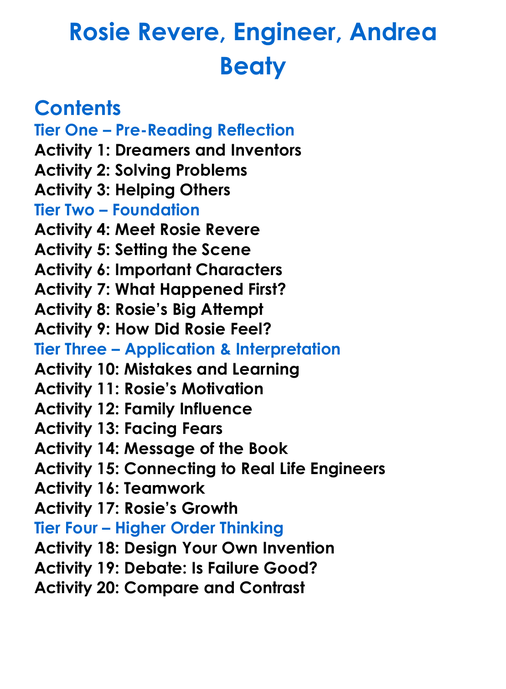 Rosie Revere Engineer Andrea Beaty Worksheet Activity Booklet