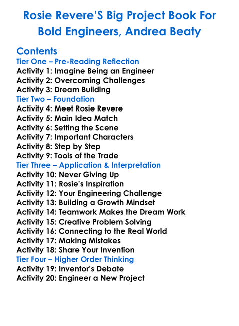 Rosie Reveres Big Project Book For Bold Engineers Andrea Beaty Worksheet Activity Booklet