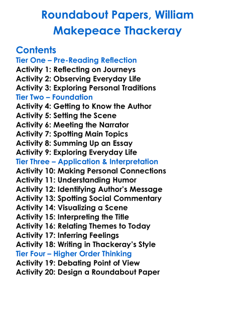 Roundabout Papers William Makepeace Thackeray Worksheet Activity Booklet
