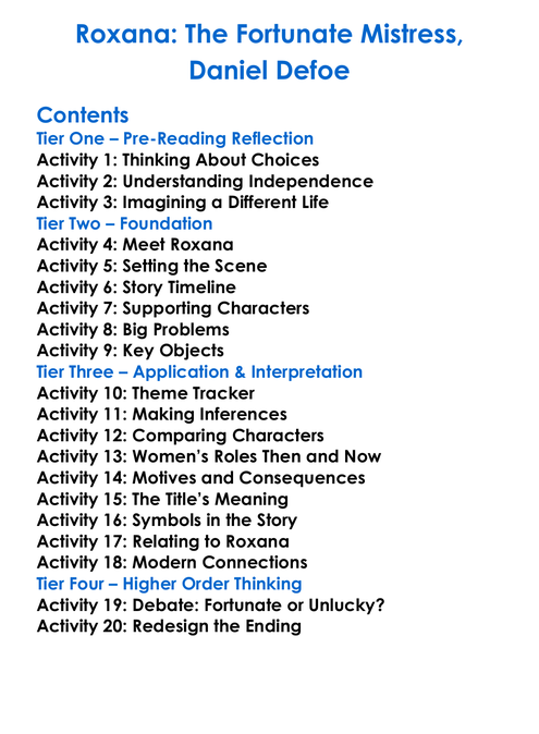 Roxana The Fortunate Mistress Daniel Defoe Worksheet Activity Booklet
