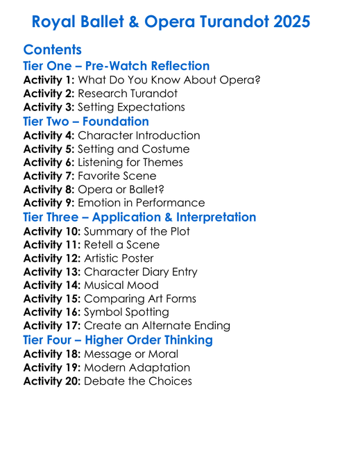 Royal Ballet Opera Turandot 2025 Worksheet Activity Booklet