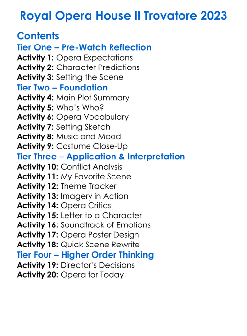 Royal Opera House Il Trovatore 2023 Worksheet Activity Booklet