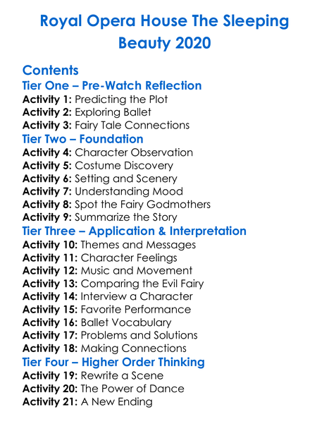 Royal Opera House The Sleeping Beauty 2020 Worksheet Activity Booklet