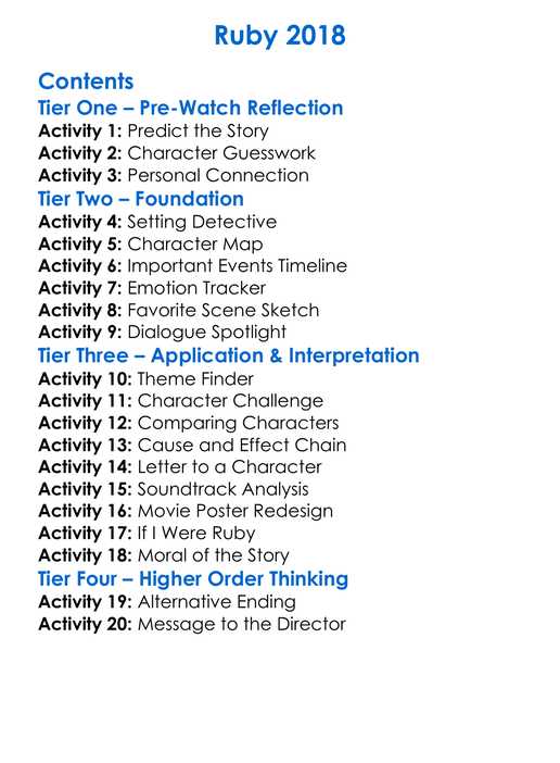 Ruby 2018 Worksheet Activity Booklet