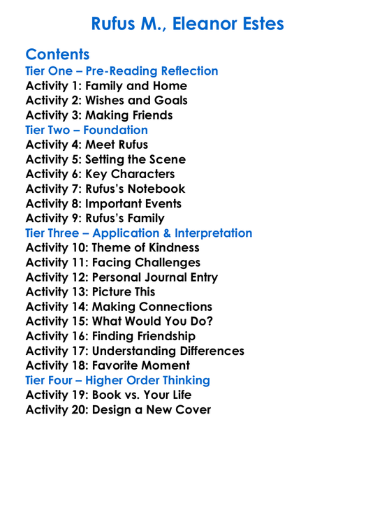 Rufus M Eleanor Estes Worksheet Activity Booklet