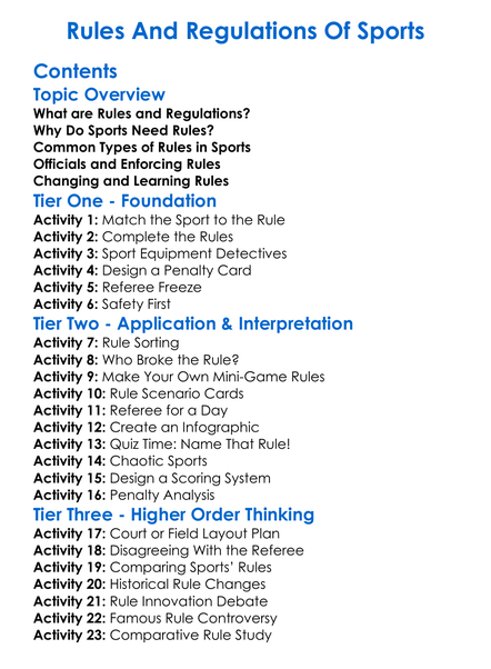 Rules And Regulations Of Sports Worksheet Activity Booklet