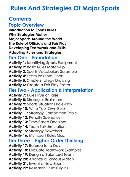 Rules And Strategies Of Major Sports Worksheet Activity Booklet