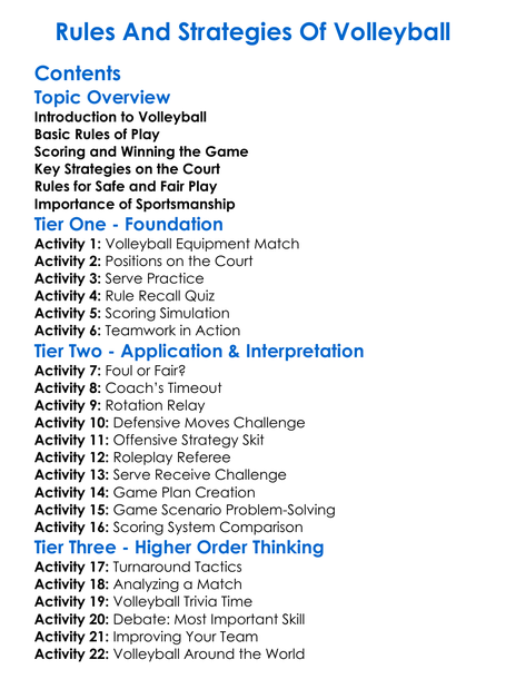 Rules And Strategies Of Volleyball Worksheet Activity Booklet