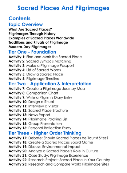 Sacred Places And Pilgrimages Worksheet Activity Booklet