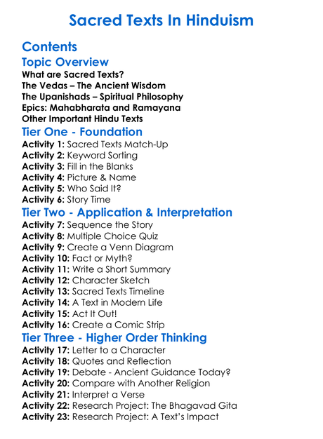 Sacred Texts In Hinduism Worksheet Activity Booklet