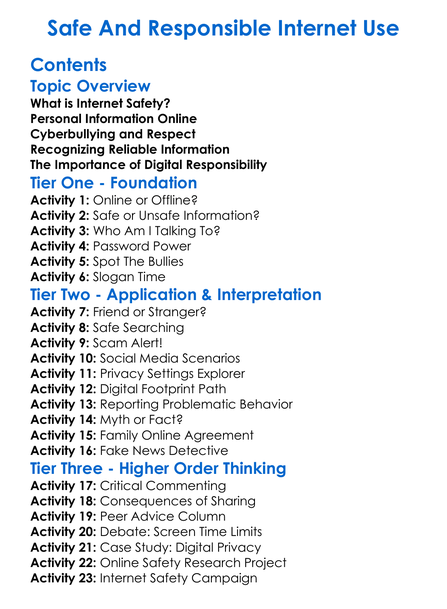 Safe And Responsible Internet Use Worksheet Activity Booklet