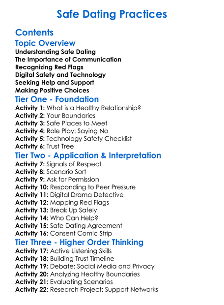 Safe Dating Practices Worksheet Activity Booklet