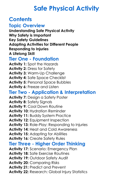 Safe Physical Activity Worksheet Activity Booklet