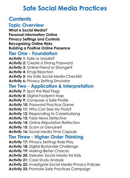 Safe Social Media Practices Worksheet Activity Booklet