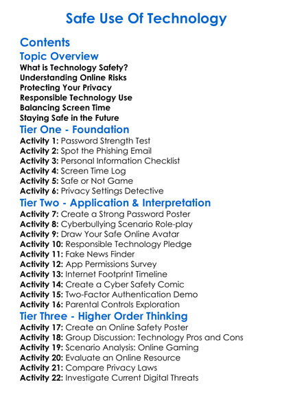 Safe Use Of Technology Worksheet Activity Booklet