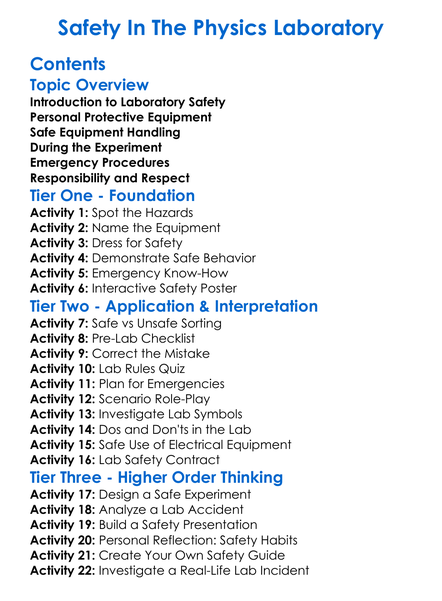 Safety In The Physics Laboratory Worksheet Activity Booklet