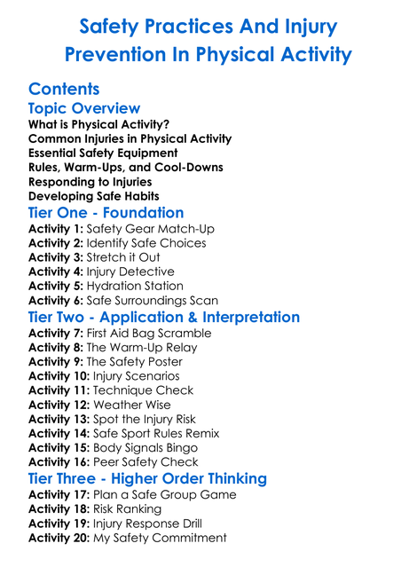 Safety Practices And Injury Prevention In Physical Activity Worksheet Activity Booklet