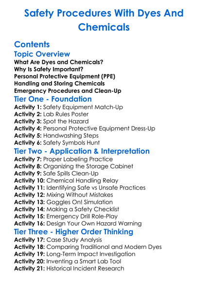 Safety Procedures With Dyes And Chemicals Worksheet Activity Booklet