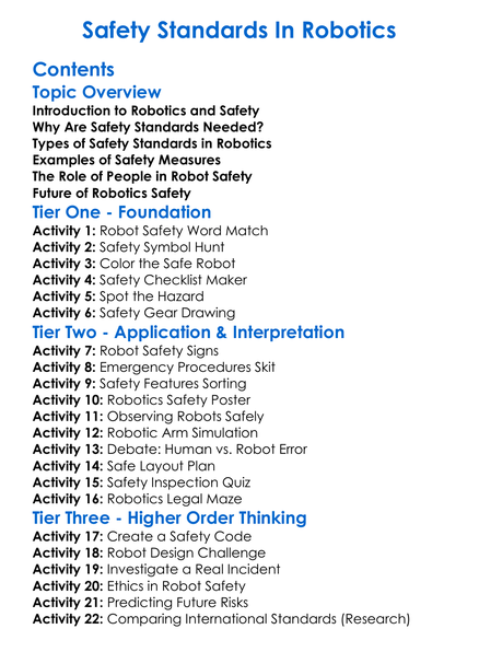 Safety Standards In Robotics Worksheet Activity Booklet