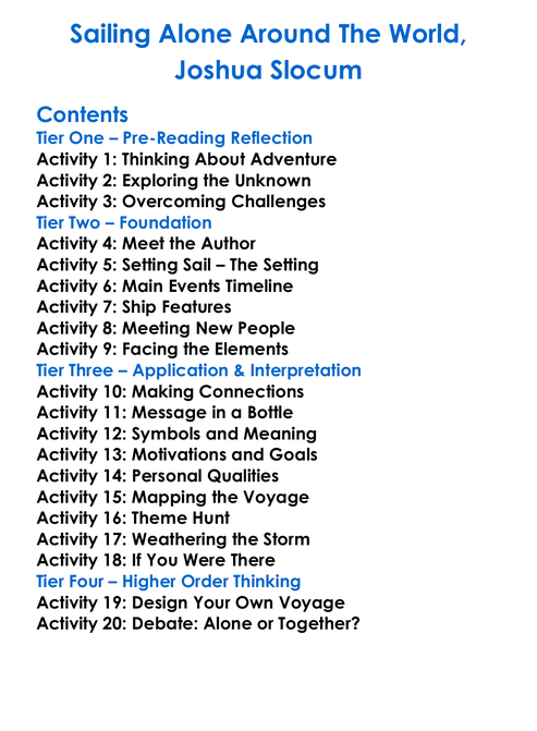 Sailing Alone Around The World Joshua Slocum Worksheet Activity Booklet