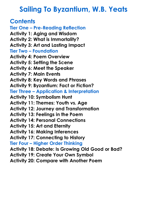 Sailing To Byzantium Wb Yeats Worksheet Activity Booklet