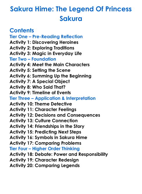 Sakura Hime The Legend Of Princess Sakura Worksheet Activity Booklet