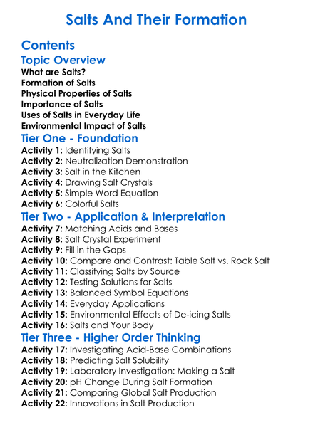 Salts And Their Formation Worksheet Activity Booklet