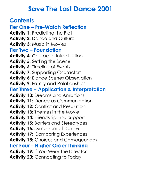 Save The Last Dance 2001 Worksheet Activity Booklet
