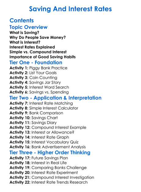 Saving And Interest Rates Worksheet Activity Booklet