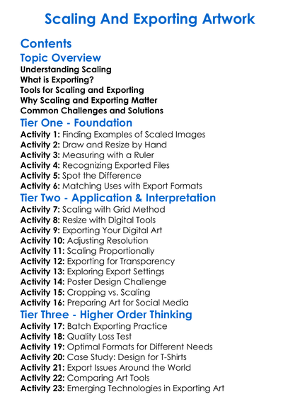 Scaling And Exporting Artwork Worksheet Activity Booklet