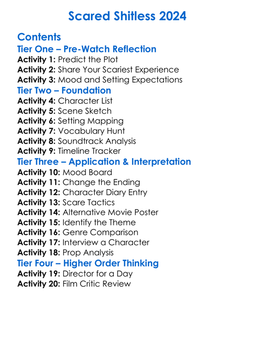 Scared Shitless 2024 Worksheet Activity Booklet