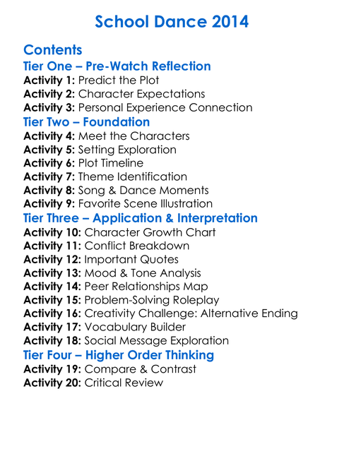 School Dance 2014 Worksheet Activity Booklet