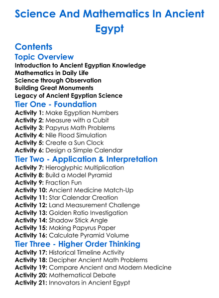 Science And Mathematics In Ancient Egypt Worksheet Activity Booklet