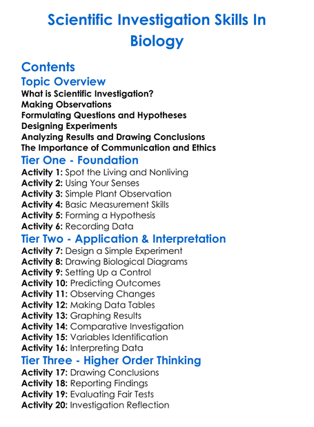 Scientific Investigation Skills In Biology Worksheet Activity Booklet