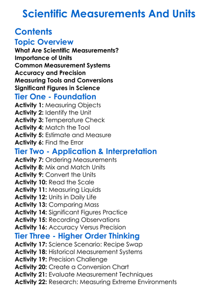 Scientific Measurements And Units Worksheet Activity Booklet