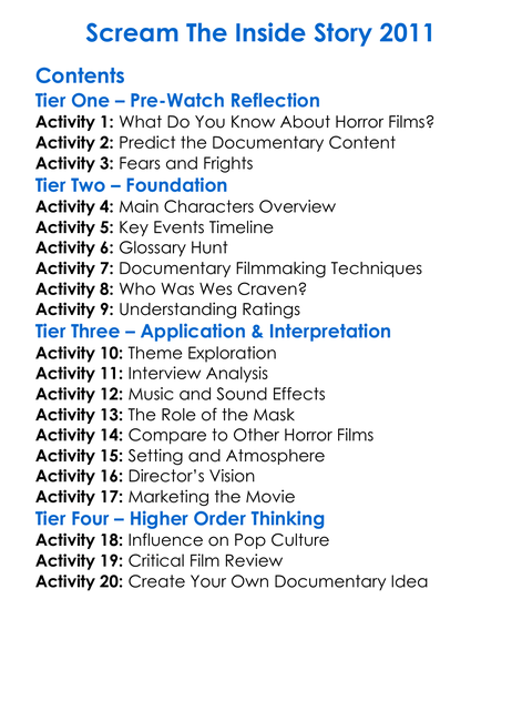 Scream The Inside Story 2011 Worksheet Activity Booklet