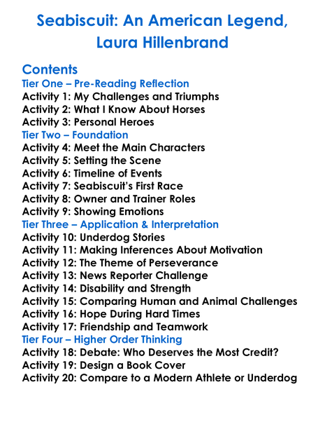 Seabiscuit An American Legend Laura Hillenbrand Worksheet Activity Booklet