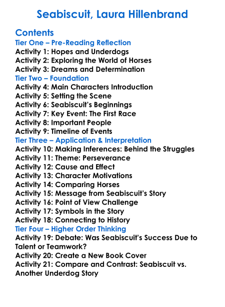 Seabiscuit Laura Hillenbrand Worksheet Activity Booklet