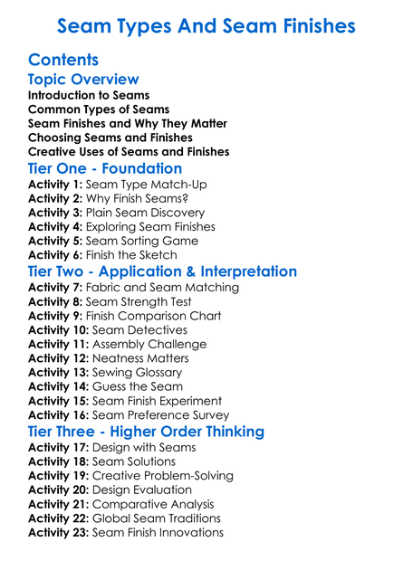 Seam Types And Seam Finishes Worksheet Activity Booklet