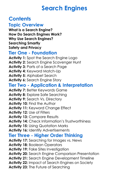 Search Engines Worksheet Activity Booklet
