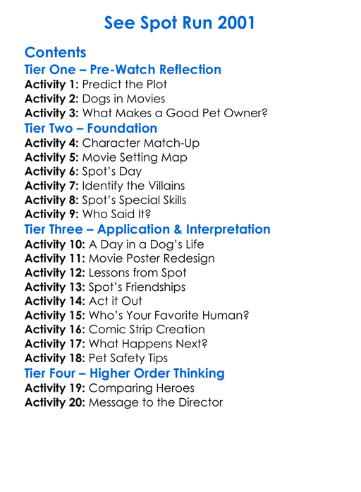 See Spot Run 2001 Worksheet Activity Booklet