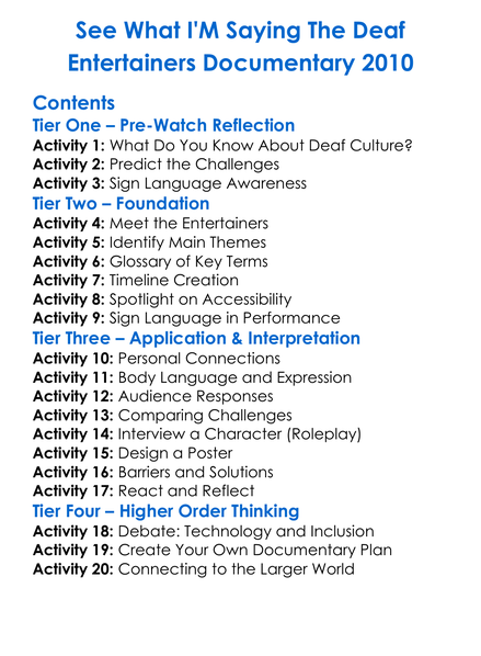 See What Im Saying The Deaf Entertainers Documentary 2010 Worksheet Activity Booklet