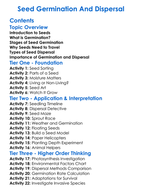 Seed Germination And Dispersal Worksheet Activity Booklet