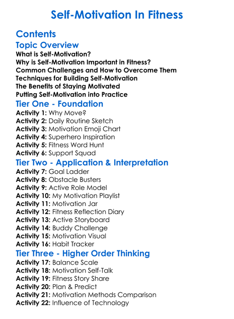 Self-Motivation In Fitness Worksheet Activity Booklet