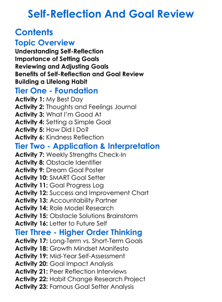 Self-Reflection And Goal Review Worksheet Activity Booklet