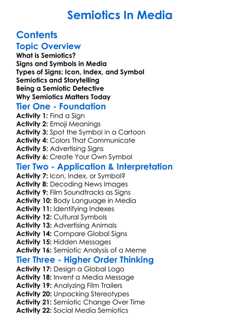 Semiotics In Media Worksheet Activity Booklet