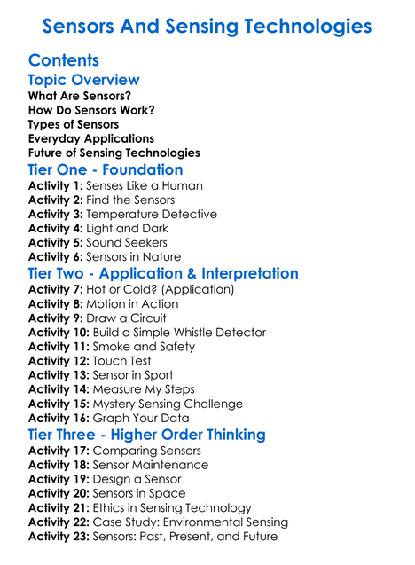 Sensors And Sensing Technologies Worksheet Activity Booklet