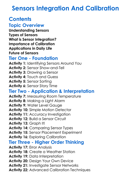 Sensors Integration And Calibration Worksheet Activity Booklet