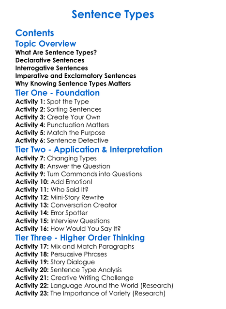 Sentence Types Worksheet Activity Booklet